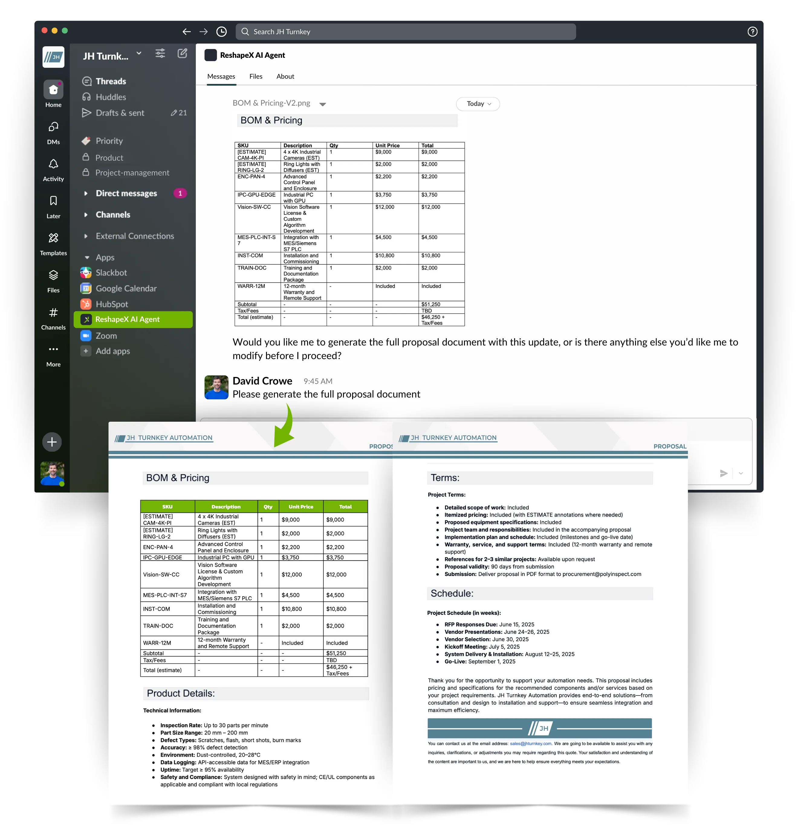 ReshapeX Agents help Systems Integrators move faster — from RFPs and factory walk-throughs to customer support long after delivery.
